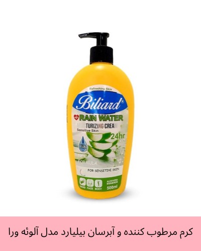 کرم مرطوب کننده و آبرسان بیلیارد مدل rain water اسانس آلوئه ورا حجم 500 میل
